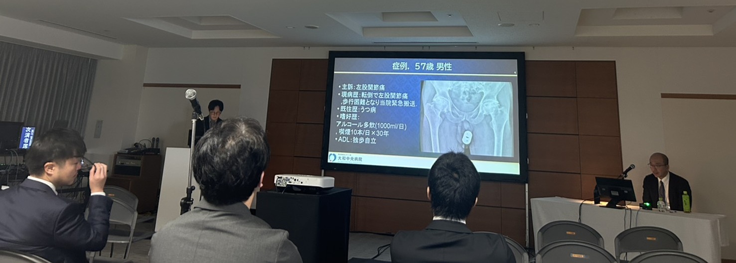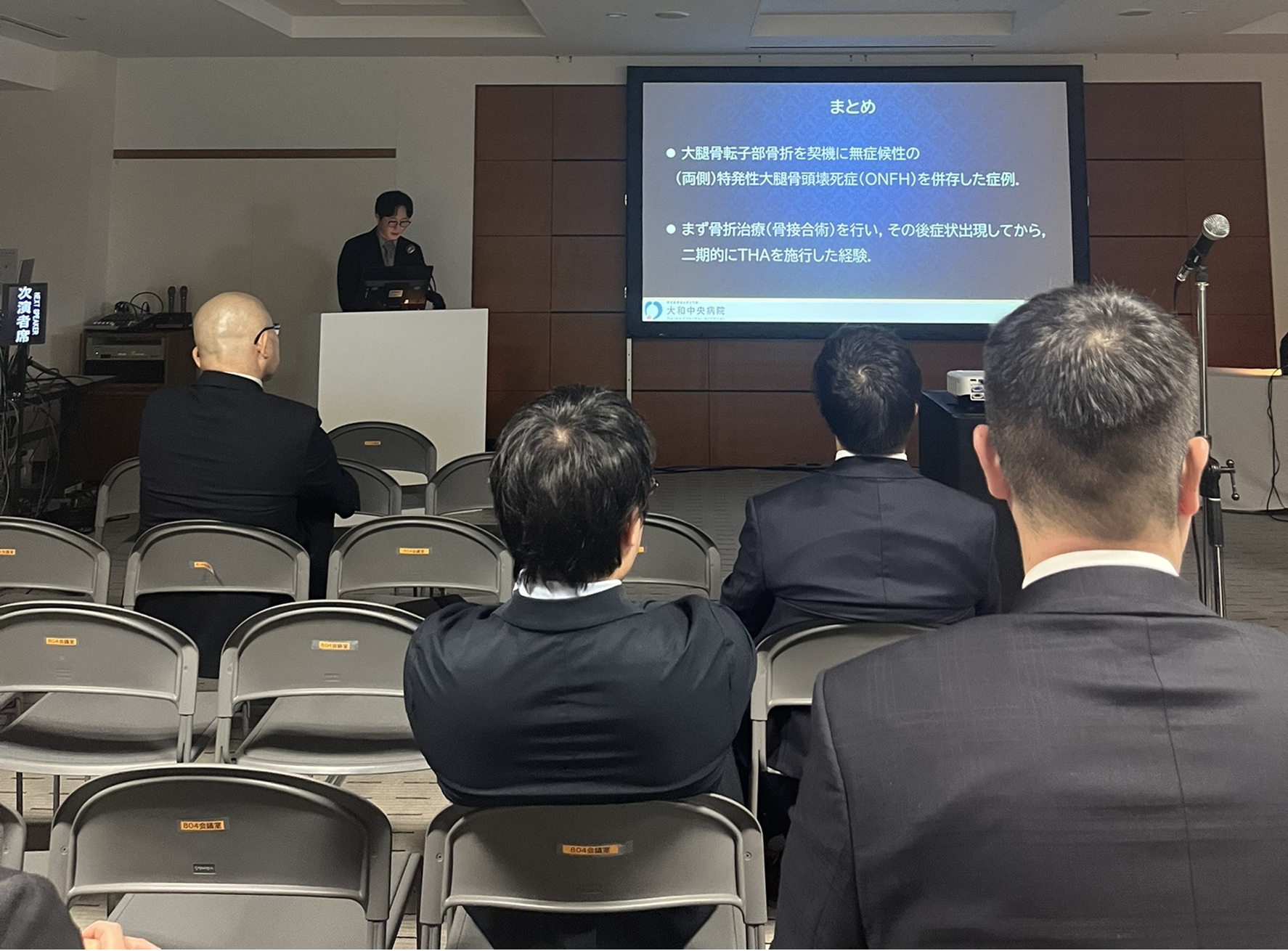 「両側Stage4大腿骨頭壊死症の大腿骨転子部骨折に対して骨接合を行い、その後両人工股関節置換術を行った経験」について口演発表を行いました。